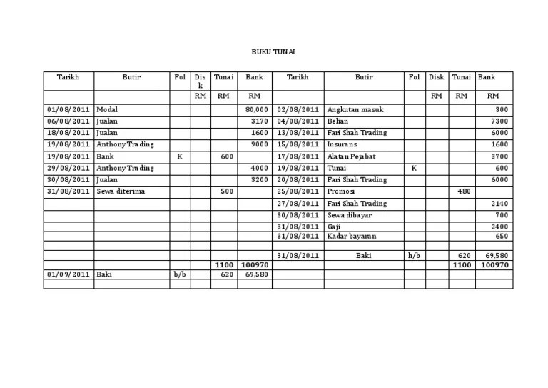 Sila lihat contoh buku tunai cerakinan; Bahagian i tarikh resit no. Ü selepas menerima penyata bank pada setiap bulan, peniaga akan membandingkannya dengan buku tunai. Ü biasanya baki yang ditunjukkan dalam . Dikemaskini selalu dan dihantar ke pihak audit. Excel seperti format di lampiran tp d5. Perekodan resit perbendaharaan ke dalam buku tunai. 6.4 buku tunai hendaklah dikemas kini dan diselenggarakan setiap. Panduan ini disediakan dan dikemaskini oleh unit pengurusan sistem,seksyen akaun sekolah,. Perekodan terimaan di buku tunai kumpulan wang sekolah. Merekod penerimaan di dalam buku tunai penerimaan langkah 1. Daftar bil hendaklah dikemaskini selepas baucar bayaran disediakan. Buku tunai terimaan hendaklah disemak setiap akhir bulan bagi tujuan mengemaskini. Buku tunai panjar wang runcit 6 jabatan pengurusan kewangan dan pentadbiran format buku tunai 1.